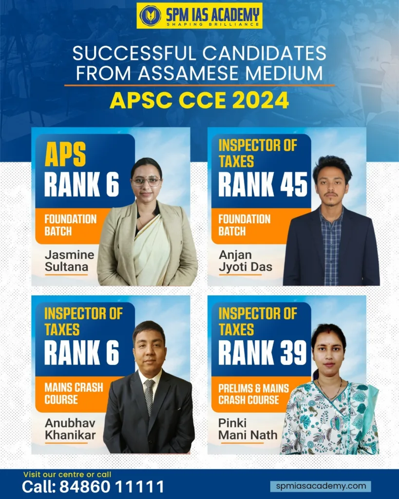 Assam-specific GK plays a decisive role in APSC. Our SPM IAS Academy offers updated topics on local history, current affairs, government schemes, and socio-economic issues of the state.