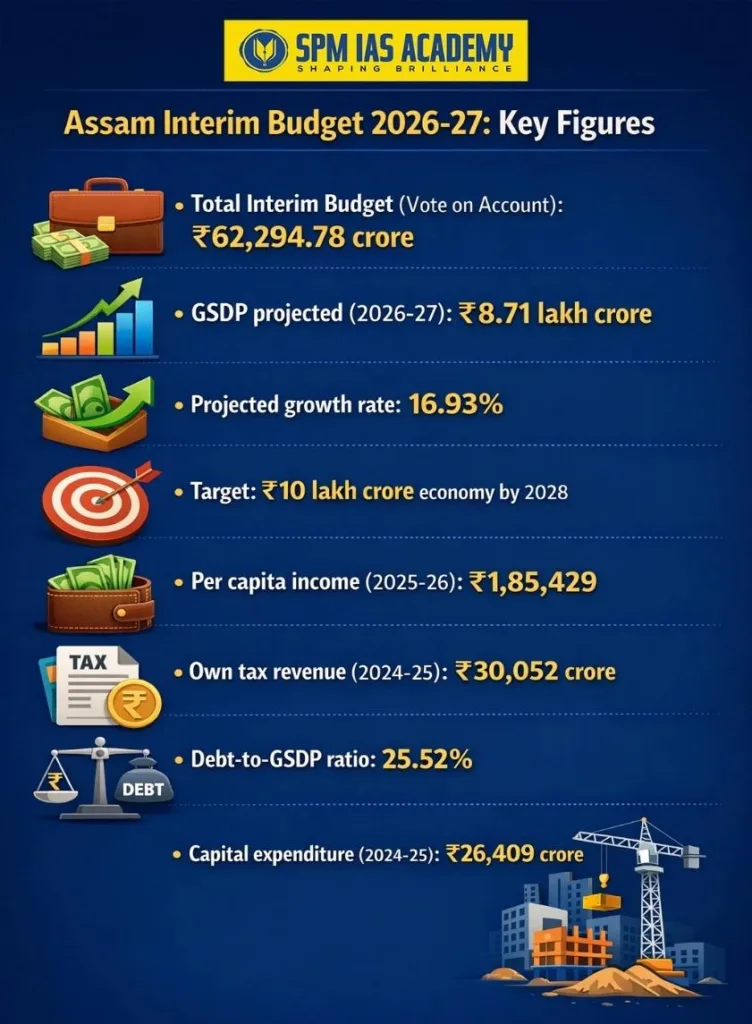 The Assam Interim Budget 2026-27 for APSC is important for GS 3, GS 5, especially topics like GSDP growth, fiscal management, and state welfare schemes.