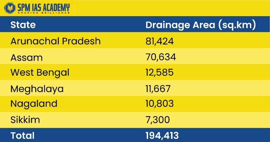 - The drainage area lying in India is 1,94,413 sq.km which is nearly 5.9% of the total geographical area of the country.