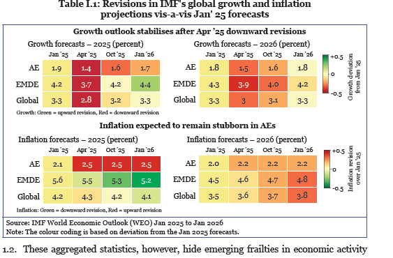 • Among major Emerging Markets and Developing Economies (EMDEs), India recorded one of the sharpest declines in headline inflation in 2025, dropping 1.8 percentage points over 2024.