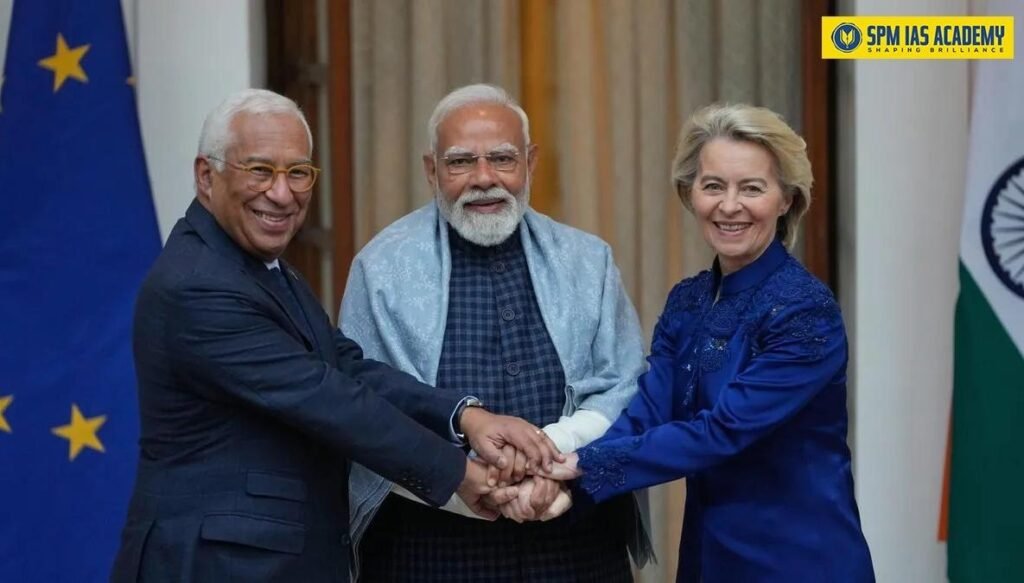 The India–EU Free Trade Agreement (FTA), 2026 marks a historic turning point in India’s economic diplomacy and global trade strategy. Concluded at the 16th India–EU Summit, 2026, this landmark deal brings together India, the world’s fourth-largest economy, and the European Union, the world’s second-largest economy. Together, they account for nearly 25% of global GDP and one-third of global trade. Referred as the ‘Mother of all deals’, the agreement goes far beyond tariff reduction. Instead, it creates a comprehensive blueprint for shared prosperity, strategic cooperation, and a rules-based global order. For UPSC, APSC, APPSC, and other State PCS aspirants, this FTA is a high-value topic covering GS-II, GS-III, Essay, and Interview stages.