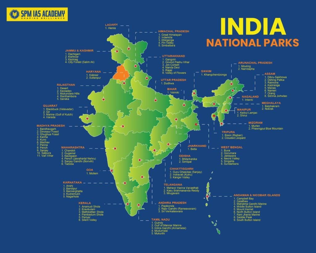 A National Park is a legally protected area established by the Government of India to conserve wildlife, biodiversity, and natural ecosystems. These parks serve as safe habitats where human activities are strictly restricted, allowing flora and fauna to flourish naturally. Unlike Wildlife Sanctuaries, where limited human use or grazing may be permitted, National Parks prohibit all forms of exploitation and private ownership. In this article, we will explore the list of national parks in India, their key features, and their importance for UPSC, APSC, and other State PSC exams