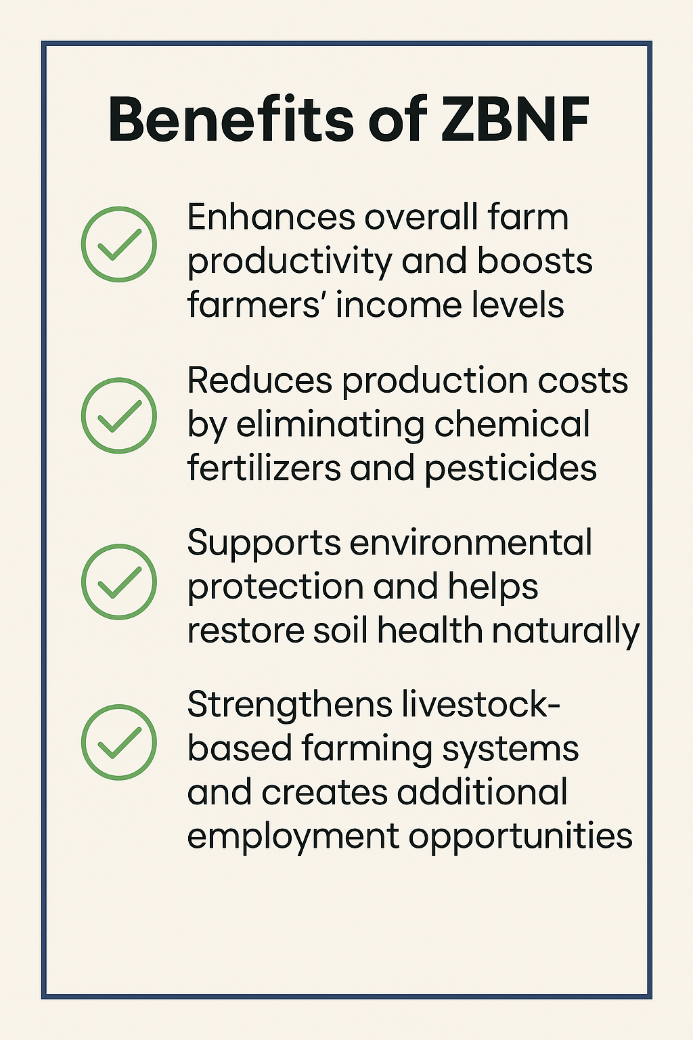 - The method lowers production costs drastically. Farmers do not spend money on fertilizers or pesticides. This supports small and marginal farmers across India.