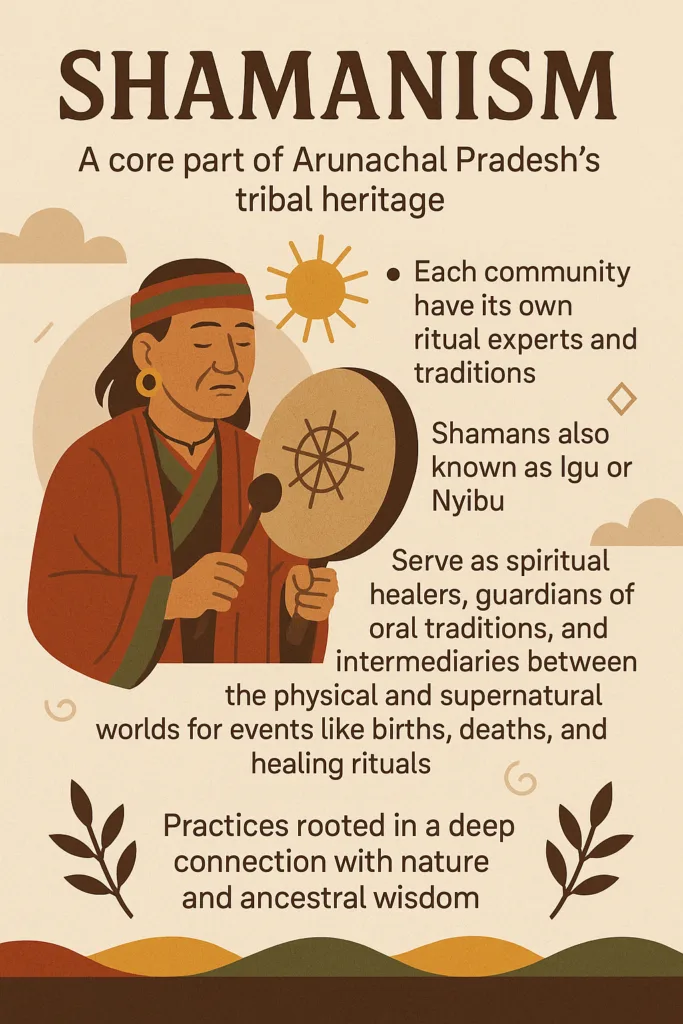 - Highlights the nature-centric worldview of Arunachal’s tribes.