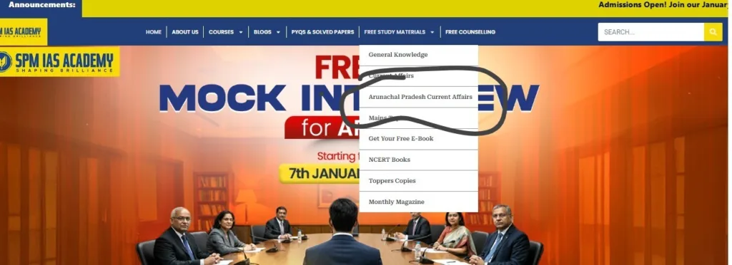 - Visit SPM IAS Academy official website, and click on the three lines in the right top corner of your screen