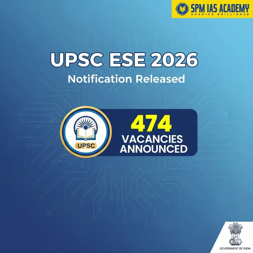 The UPSC ESE 2026 notification has officially been released by the Union Public Service Commission (UPSC) on 26th September 2025, with 474 vacancies for various engineering disciplines. The Engineering Services Examination (ESE), also known as the Indian Engineering Services (IES), is one of the most prestigious exams conducted by UPSC to recruit engineers for Grade A positions in government departments.